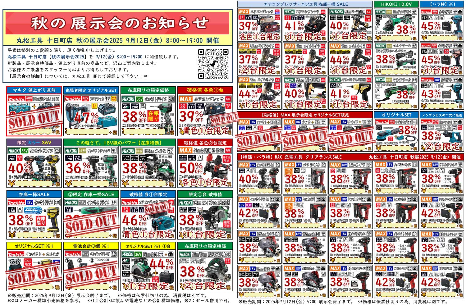 十日町店 秋の大展示会2025 特売チラシ(クリアランス SALE)