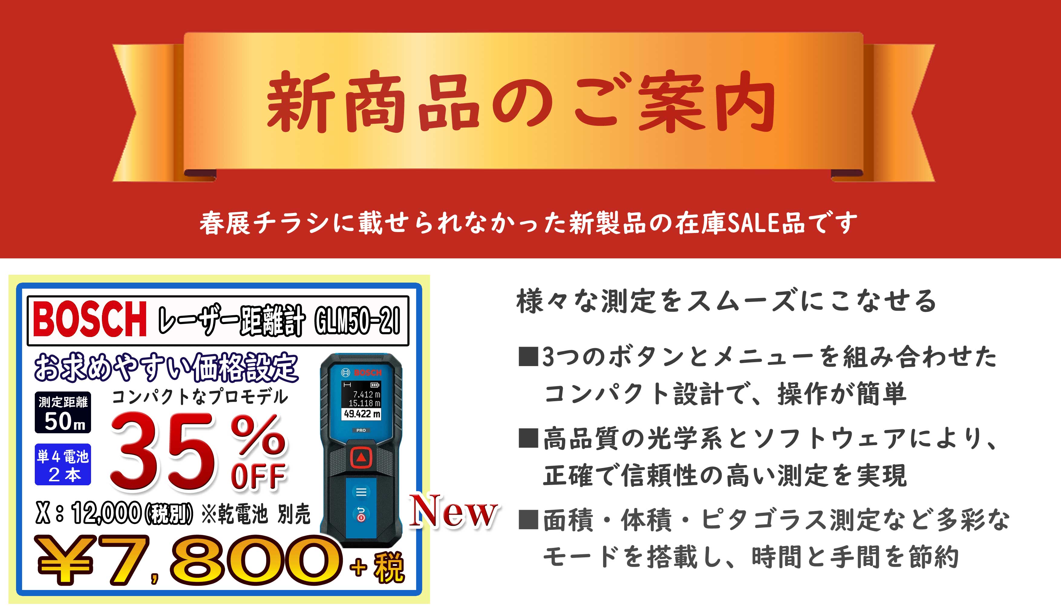 春展2026 追加SALE① ボッシュ レーザー距離計 GLM50-21